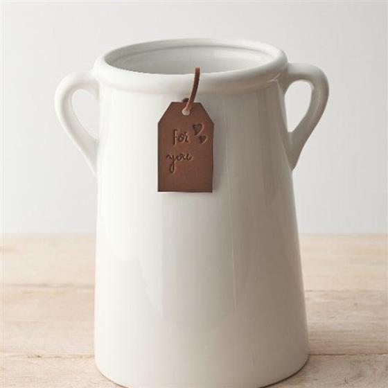 A timeless home accessory, complete with a stylish tan coloured PU leather tag, which reads 'for you' and is decorated with two small love hearts.